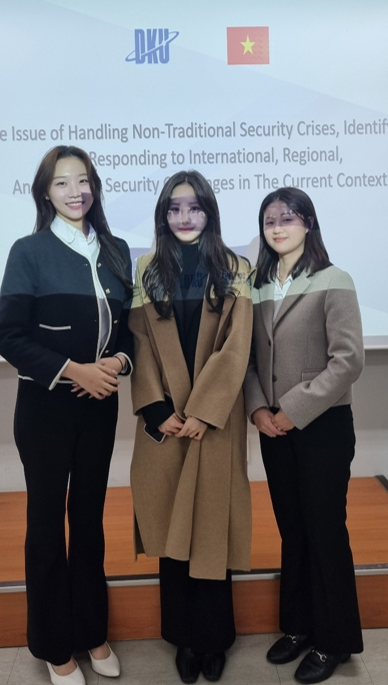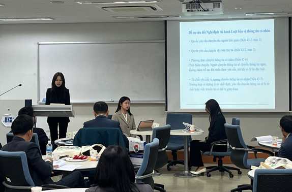2024-2학기 [공공가치론(지도교수: 최돈위)]을 수강하고 있는 행정학과 김효은(행정22), 이지영(행정22), 신성경(행정22) 학생이 최돈위 교수와 함께 베트남 공무원들을 대상으로 “개인정보보호법과 마이데이터”라는 주제의 교육을 진행했습니다.