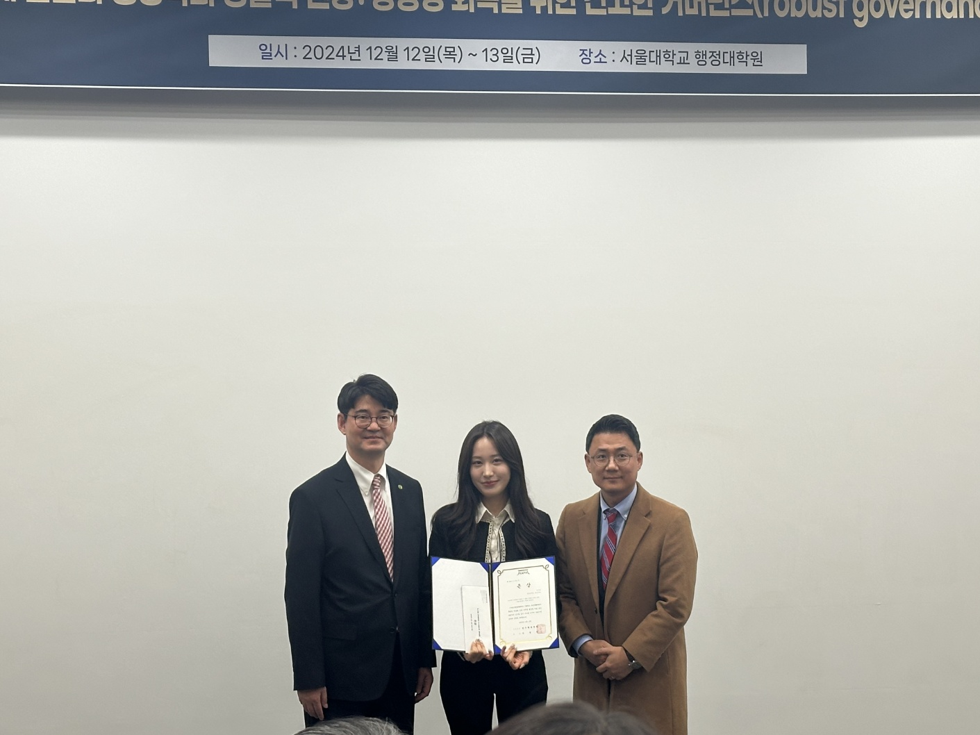 특히 이번 대회에는 전국의 학부생들이 많이 지원하여, 경쟁이 치열했음에도 불구하고, 이지영 학생은 은상을 수상하는 쾌거를 이루었습니다. 특히 심사위원들은 이지영 학생의 연구논문이 기존의 기술수용모델을 확장하는 데 기여했을 뿐만 아니라, AI 행정을 기획 및 운영하는 정책결정자 및 공무원들이 새로운 기술적용에 대한 시민들의 기대와 전망을 이해하는 데 있어 실용적인 시사점을 제공한다고 칭찬하였습니다.