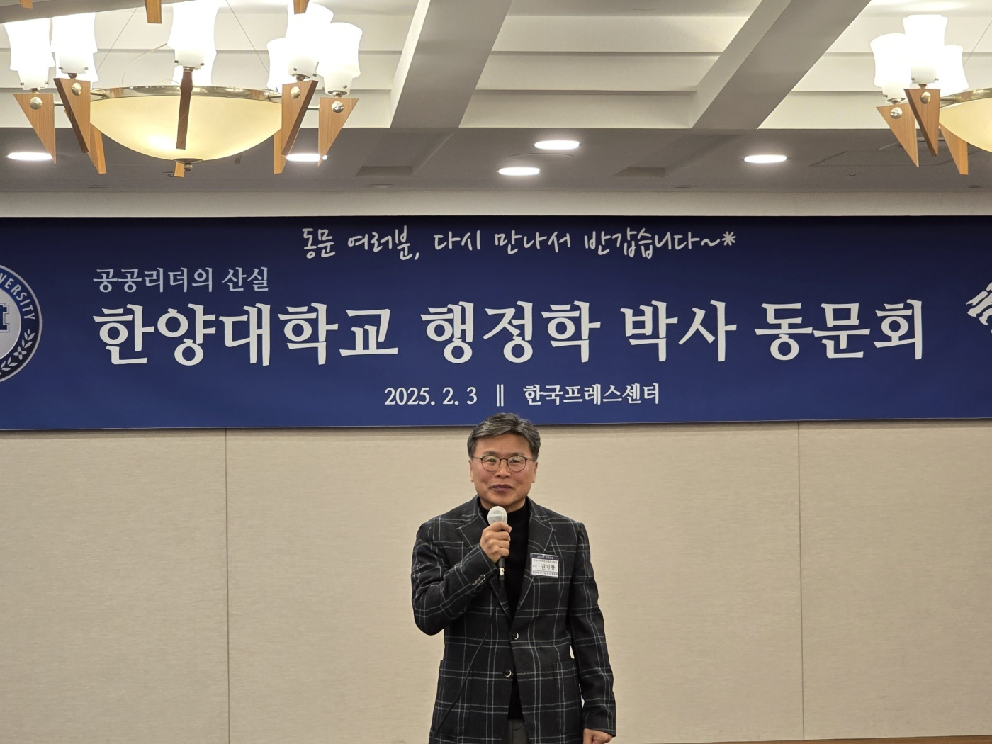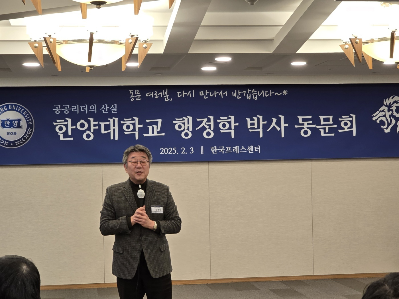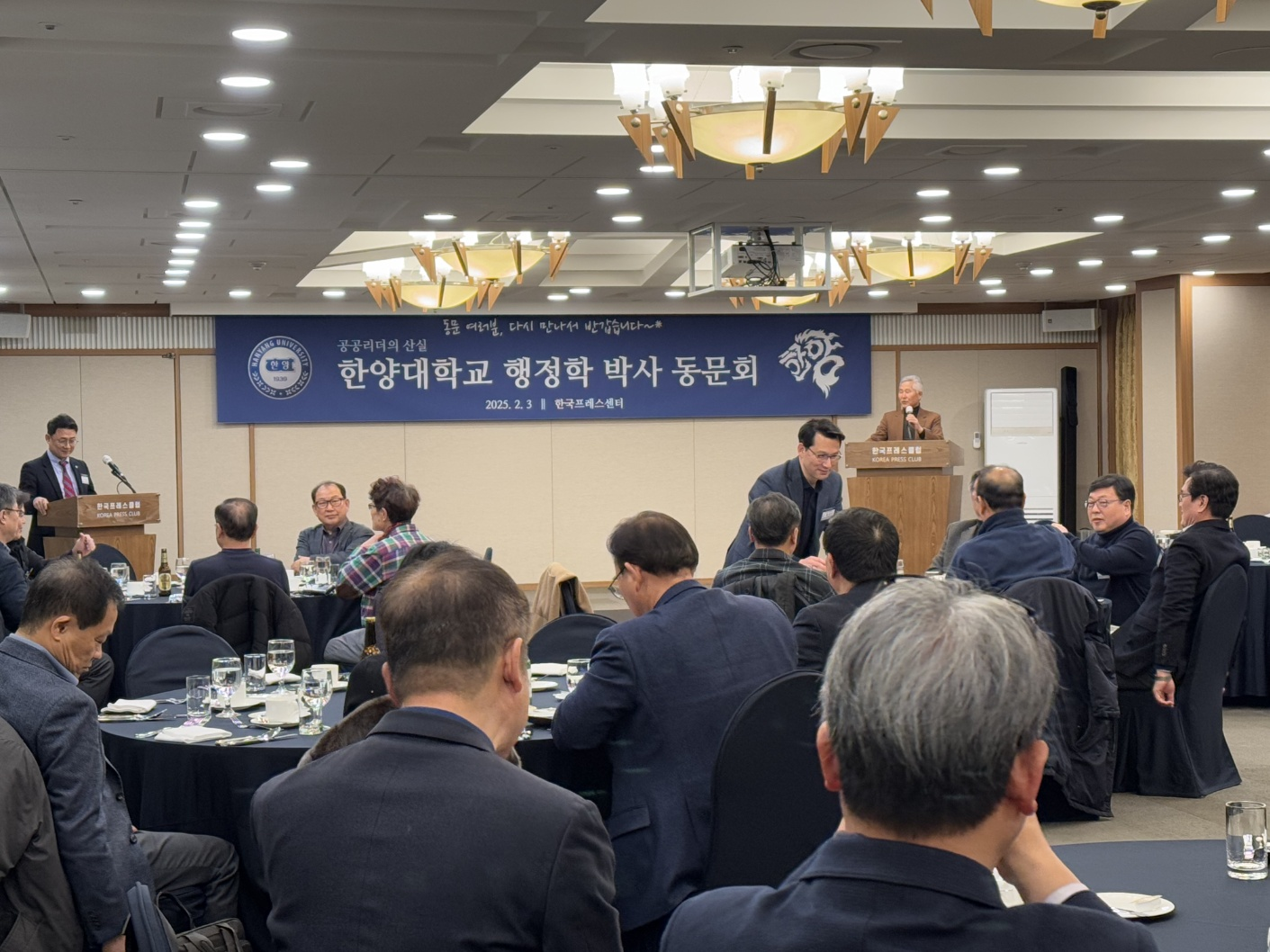 지난 2월 3일(월) 한국프레스센터에서는 한양대 행정학 박사 동문회의 신년모임이 있었습니다. 한양대 행정학과 출신 행정학 박사들 간 전문가 네트워크를 강화하고, 한양 행정학과의 발전에 기여하기 위해 조직된 본 동문회의 이 날 행사에는 44명의 한양대 출신 행정학 박사 동문들이 모여, 친목을 도모함과 동시에, 한양대 행정학과의 발전방안에 대해 논의하였습니다.