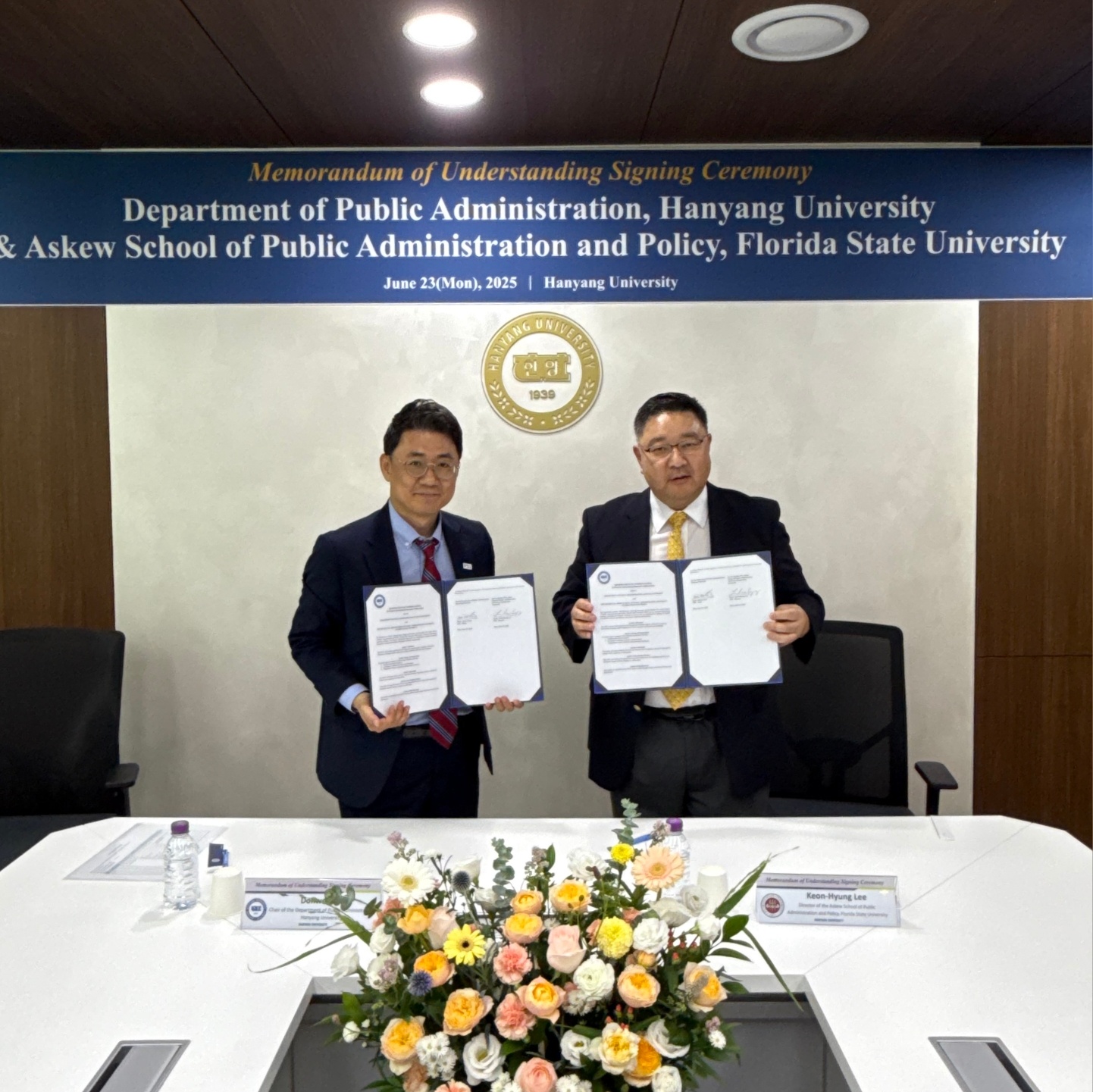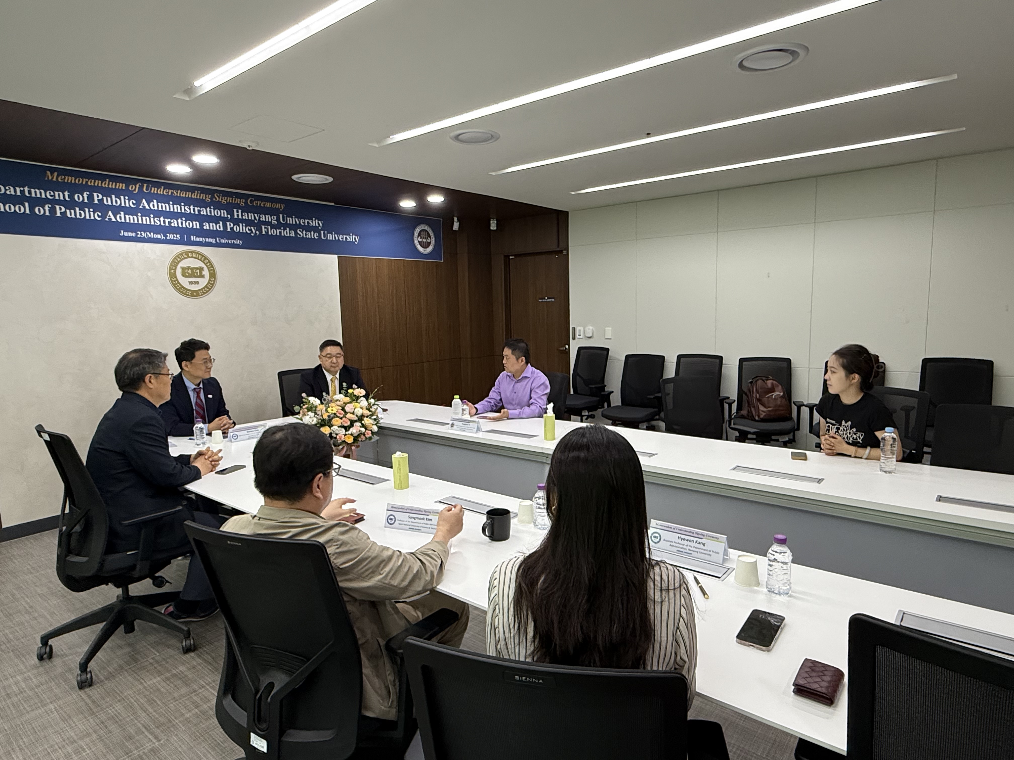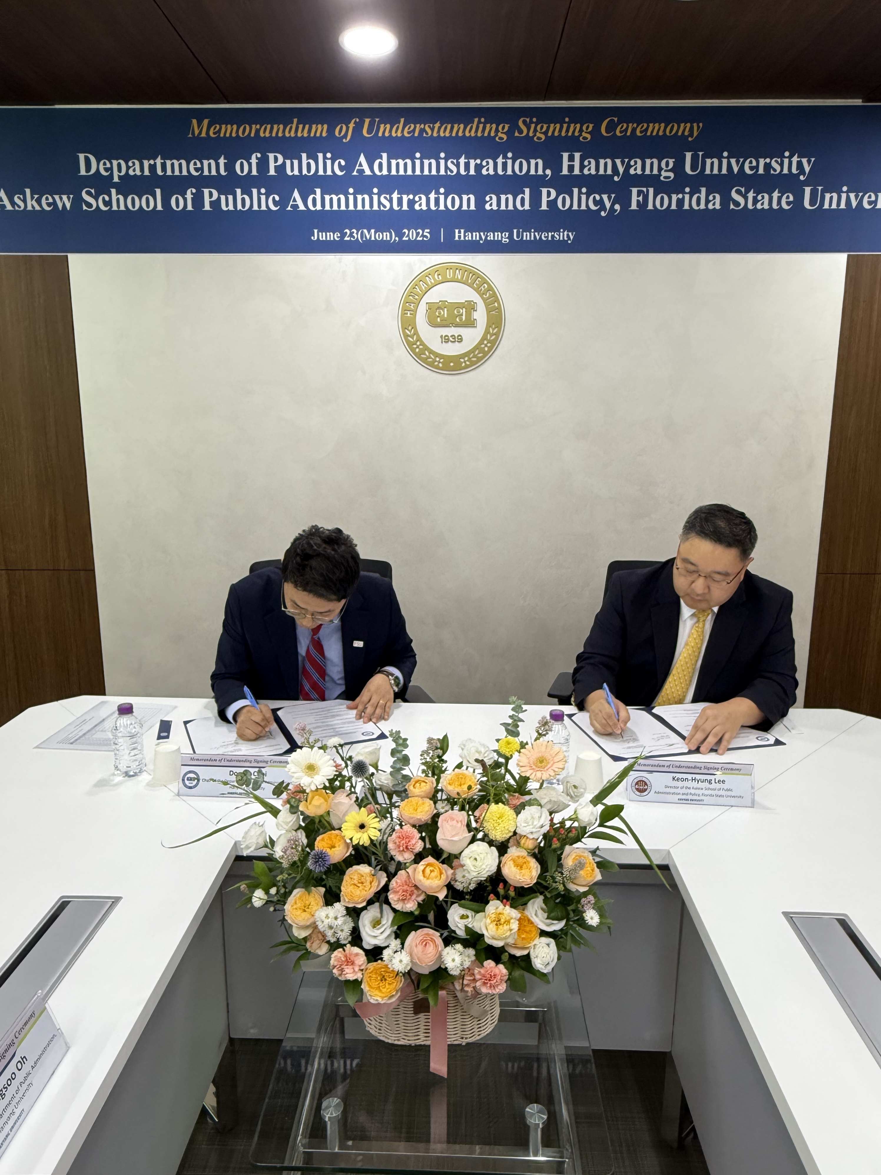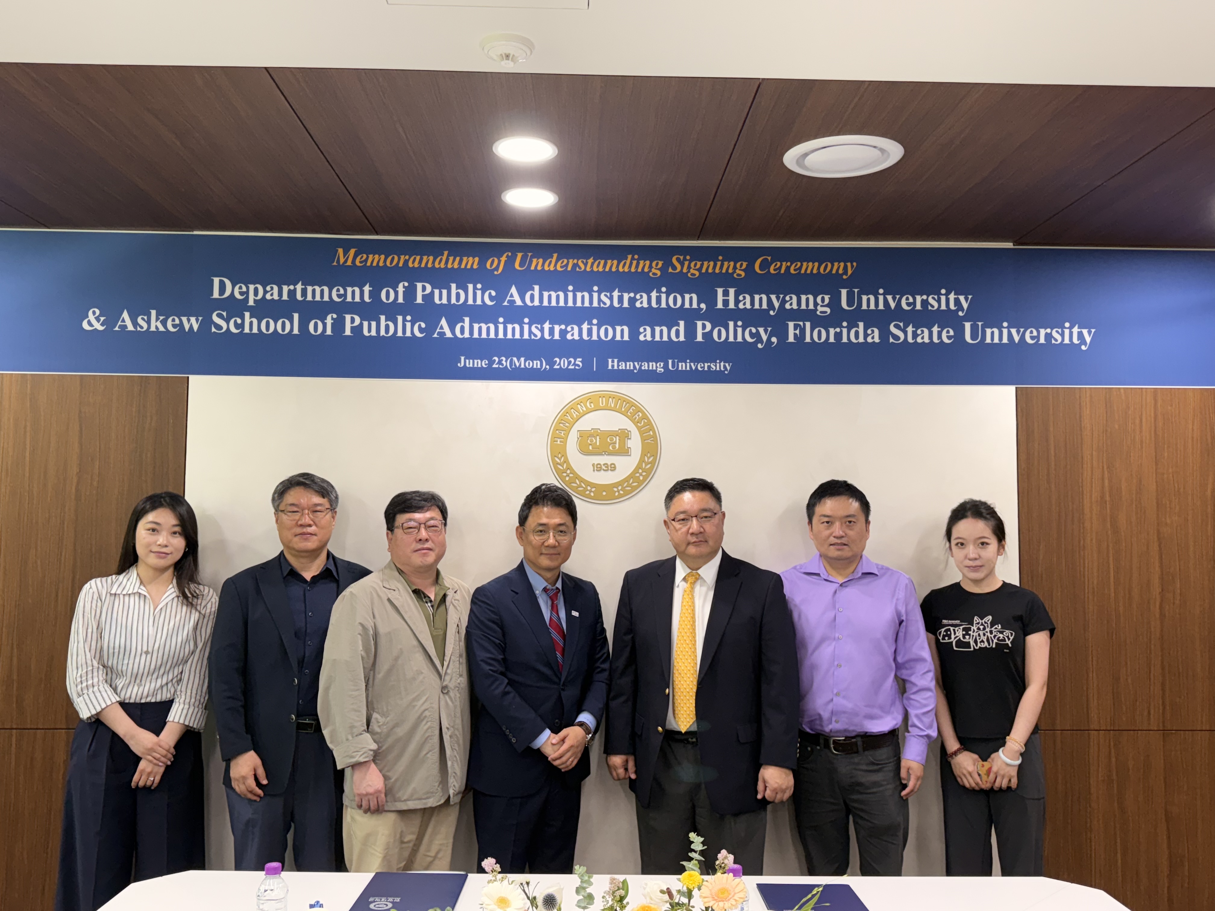 우리 행정학과는 지난 6월 23일(월) Florida State University의 Reubin O'D. Askew School of Public Administration and Policy와 국제공동연구 제고를 위한 MOU를 체결하였습니다. FSU Askew School은 행정학 분야 우수대학이자 대표적인 친한파 대학으로서, 국내 가장 많은 박사동문을 가지고 있는 미국 대학들 중 하나입니다. 특히 최근에는 연구업적이 우수한 교수님들을 초빙하여, 다시 한번 더 발돋움하고 있는 중입니다. 우리 행정학과는 이번 MOU를 통해, 우리 학과의 교수님 및 대학원생과 FSU Askew School의 교수님 및 대학원생 간 국제공동 연구프로젝트팀을 구성하여, 협동연구를 진행할 예정입니다. 이를 바탕으로, 2026년 전미행정학회 학술대회(American Society for Public Administration’s Annual Conference)에서 양 학과 공동세션을 개최하고, 이 때 얻은 피드백을 바탕으로 최종원고를 2026년 내 SSCI급 저널에 투고하여, 2027년 내 Publication을 하고자 합니다.