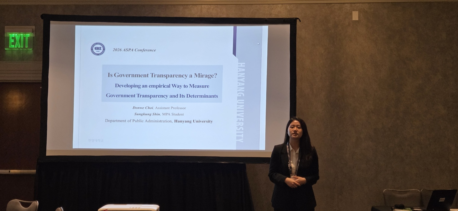 무엇보다 이번 발표는 국제공동연구의 ‘가능성’이 아니라 ‘실행된 성과’를 증명한 자리였다는 점에서 그 의미가 크다고 할 수 있습니다. 연구진은 이번 ASPA 발표를 통해 국제공동연구의 중요한 마일스톤을 확인했을 뿐 아니라, 향후 SSCI급 저널 출판을 향한 강한 자신감도 얻게 되었다. 이는 한양대 행정학과가 세계 무대에서 연구성과를 생산하고 확산할 수 있는 역량을 갖춘 학과임을 보여주는 상징적인 장면이기도 합니다.