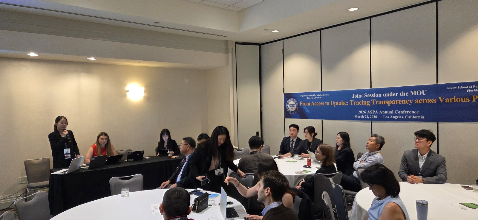 우리 한양대학교 행정학과는 미국 캘리포니아 로스앤젤레스에서 열린 ASPA Annual Conference에서 Florida State University(FSU) Askew School과의 공동패널을 성공적으로 개최하며, 국제공동연구 역량과 글로벌 연구네트워크의 저력을 다시 한번 입증했습니다.