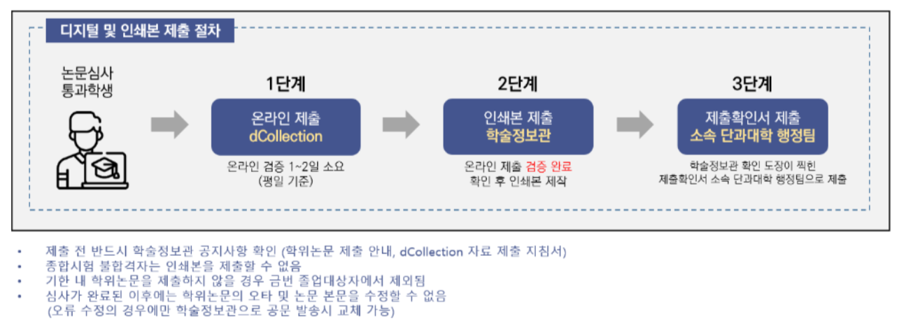 4. 학위논문 ”제출확인서”을 소속 단과대학 행정팀에 제출해야만 졸업대상자에 포함되므로 꼭 제출해주시기 바랍니다.
