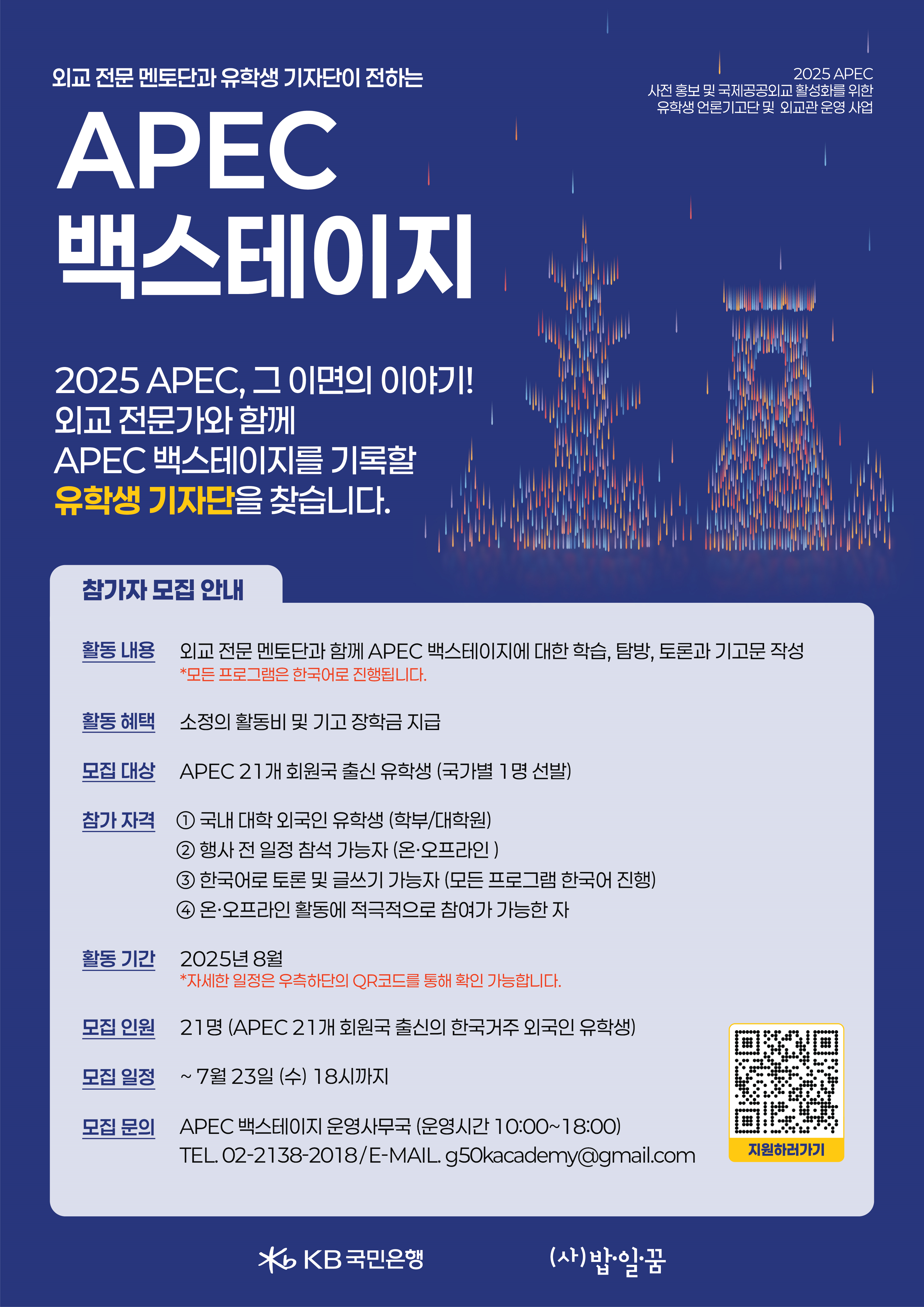 외교 전문가와 함께 APEC 백스테이지를 기록할 유학생 기자단을 찾습니다.