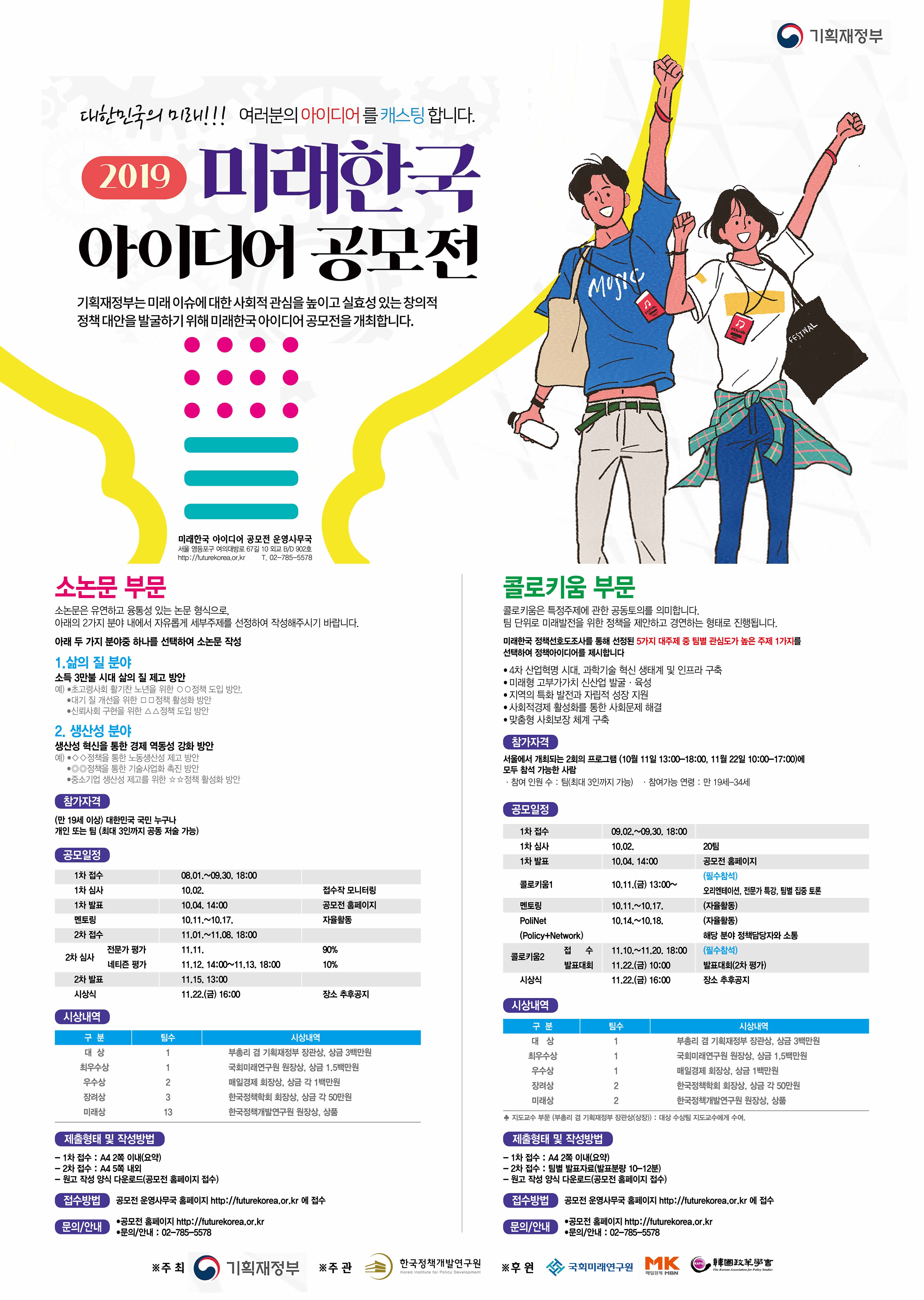 <한국정책개발연구원 기획재정부 "미래한국 아이디어 공모전" 안내> 관련 내용입니다.