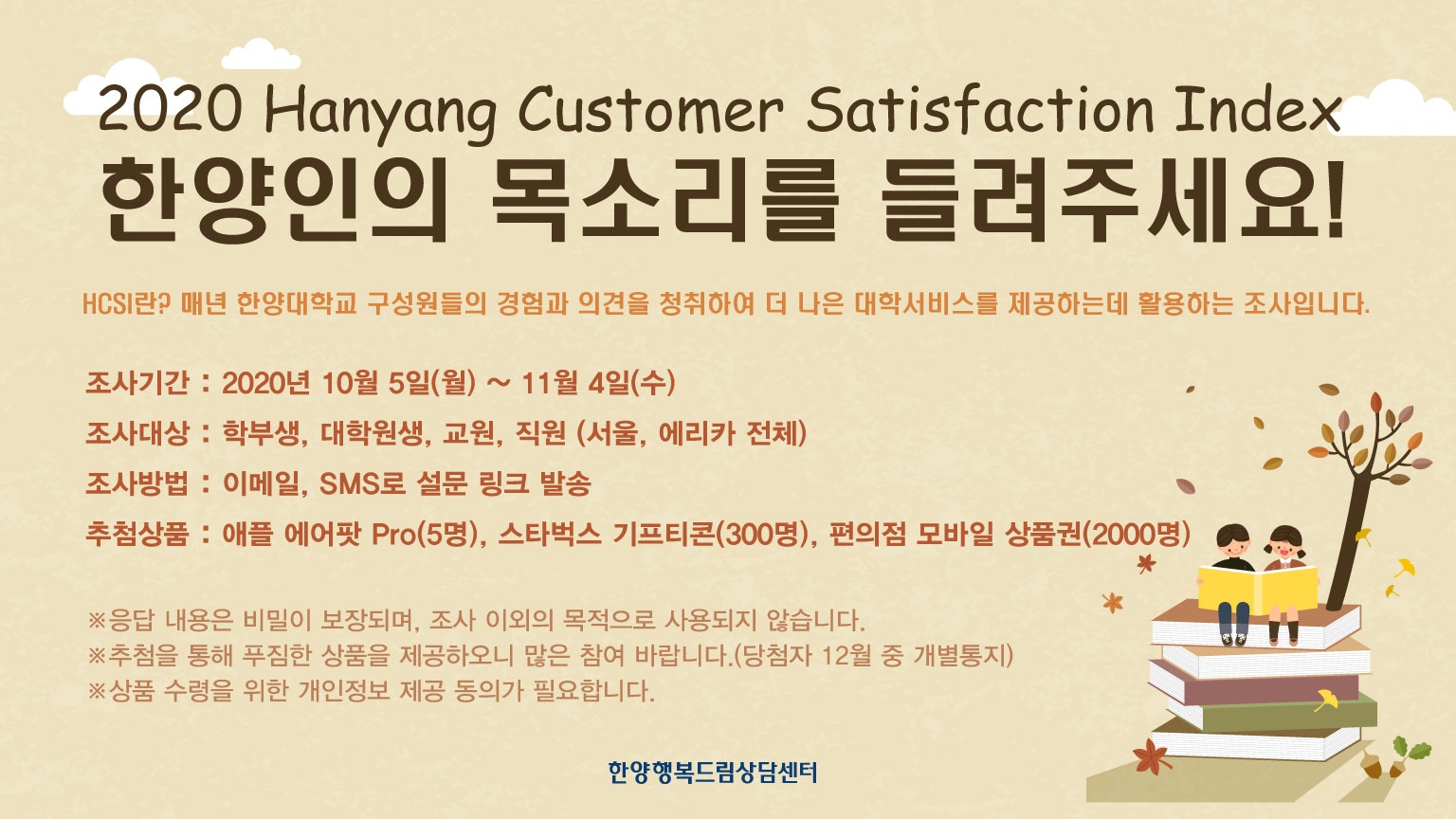 [대학원] 2020년도 한양고객만족도(HCSI)조사 참여 안내