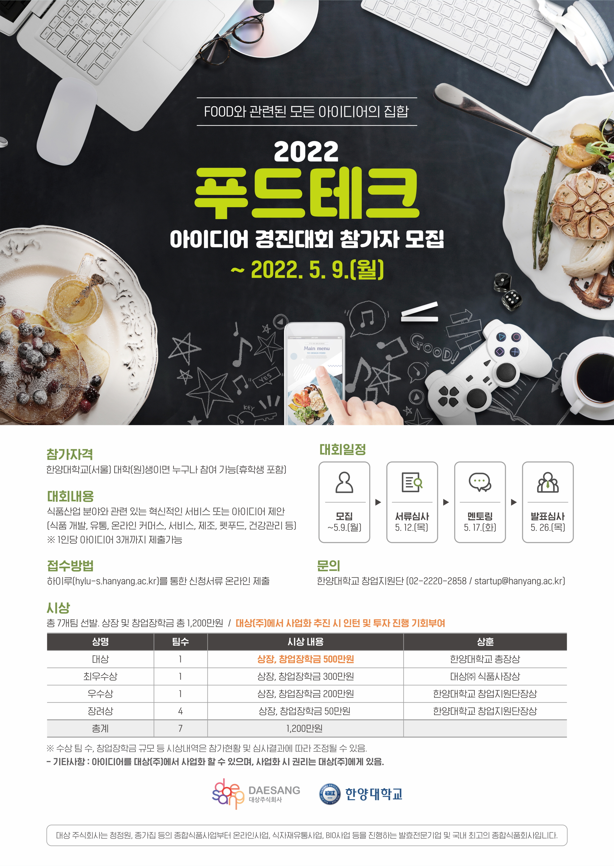 사. 문의: 한양대학교 창업지원단(전화 02-2220-2858, 이메일 startup@hanyang.ac.kr)