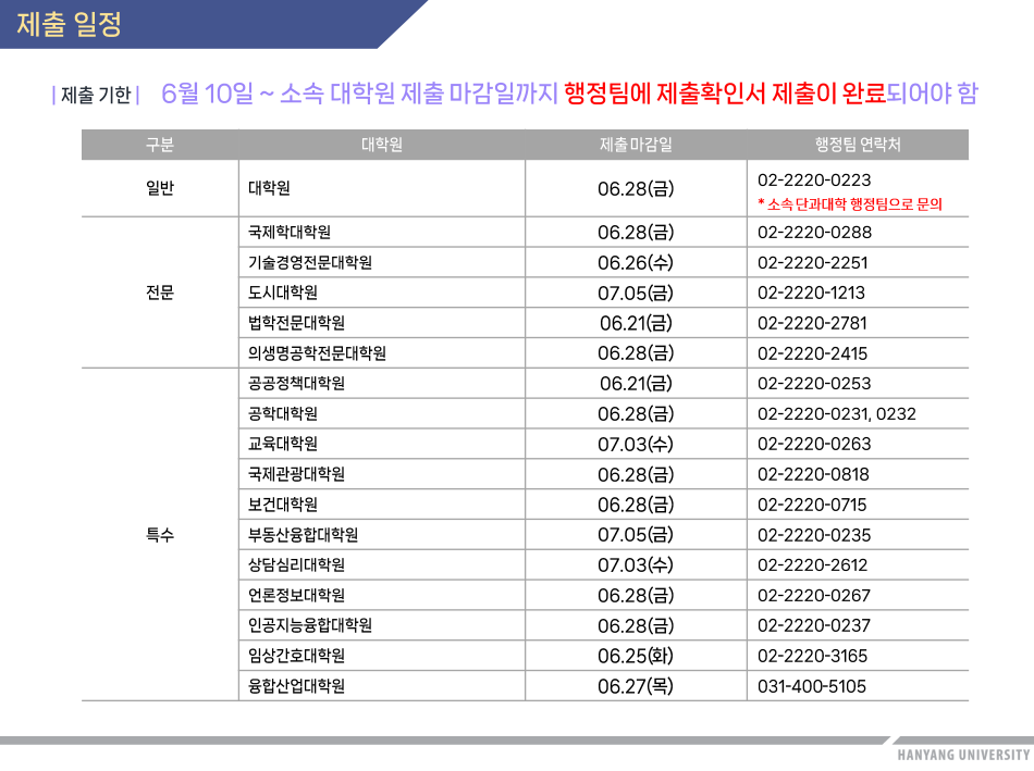 3. 일반대학원 학위청구논문 제출 기한
