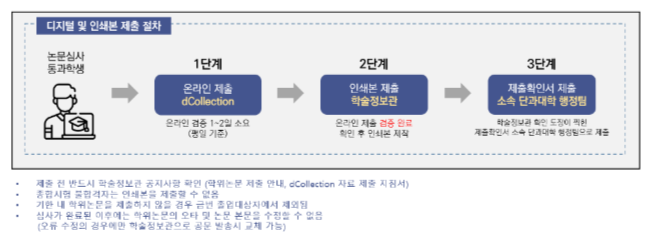※ 학위논문 ”제출확인서”을 소속 단과대학 행정팀에 제출해야만 졸업대상자에 포함됨