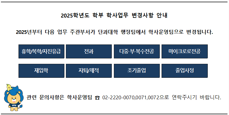 ★★★2025학년도 학부 학사업무 변경사항 안내★★★