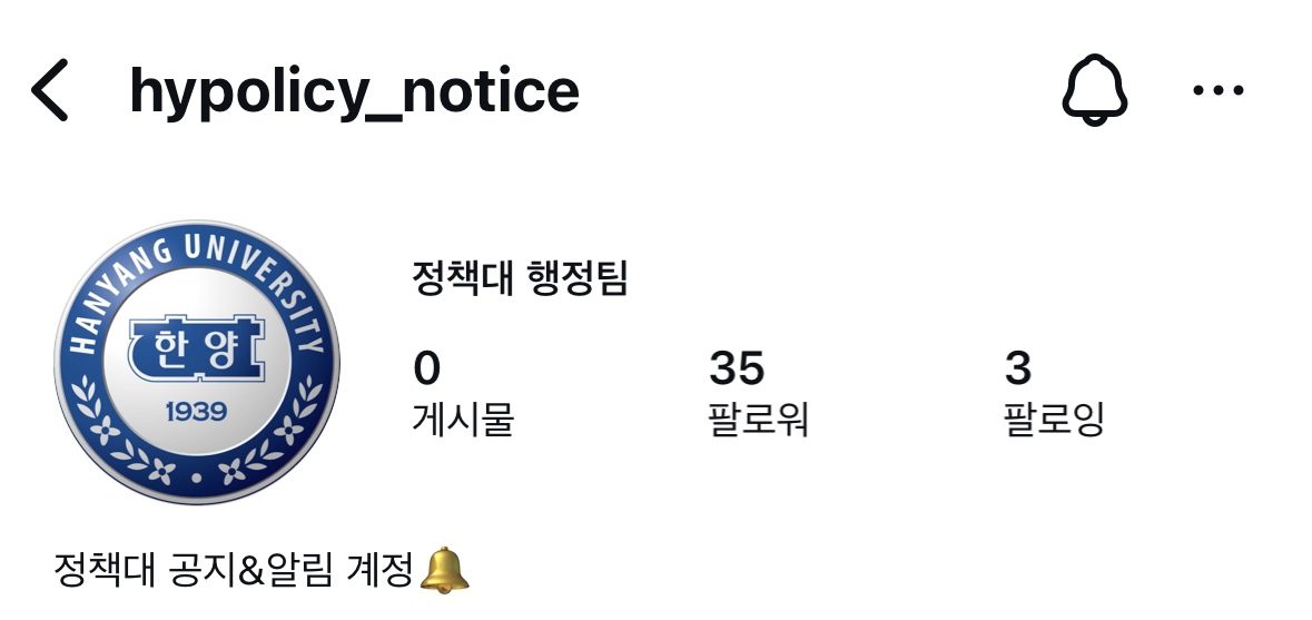 한양대학교 정책대 행정팀에서 운영하는 공식 계정입니다.