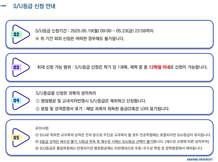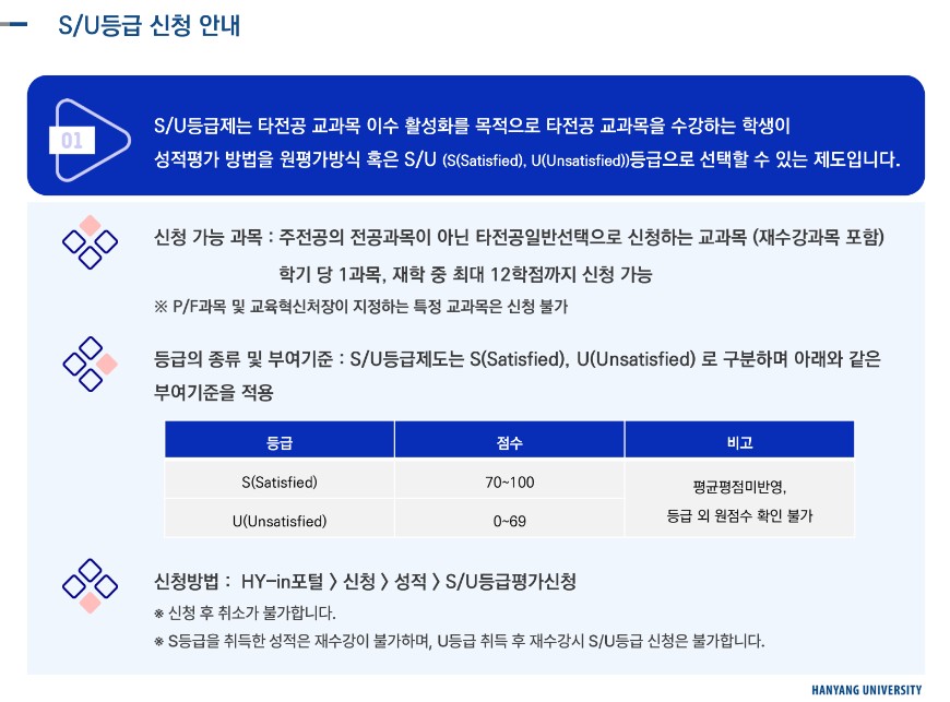 타전공 교과목 이수 활성화를 목적으로 S/U등급제 평가방식 제도가 신설되었습니다.