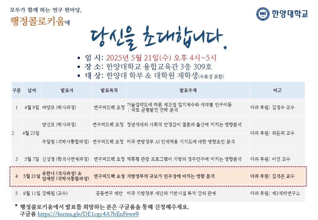 ★★★행정학과 <행정콜로키움> 초대장 (5월 21일)★★★