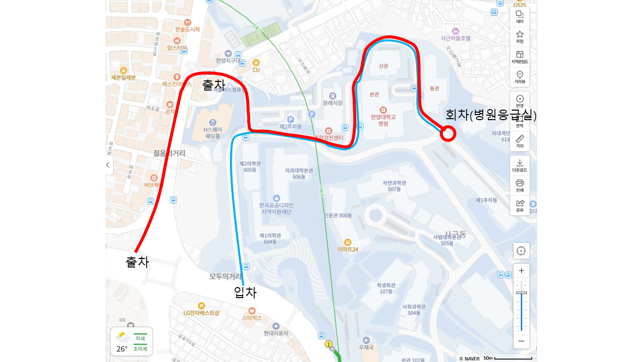 2) 17시~종료시간 : 병원 응급실에서 회차(대학 진입 불가)