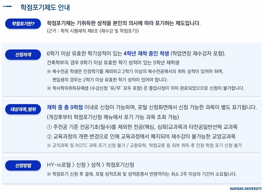 라. 신청방법 : 포털 > 신청 > 성적 > 학점포기신청