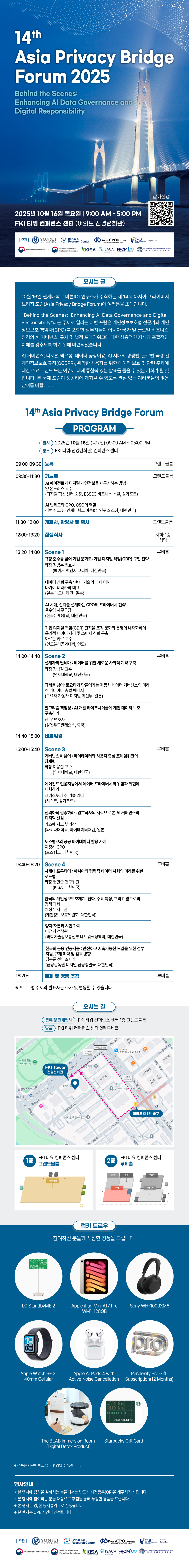 연세대학교 바른ICT연구소는 2025년 10월 16일 전경련회관에서 제14회 아시아 프라이버시 브리지 포럼(Asia Privacy Bridge Forum, APB Forum)을 개최합니다.