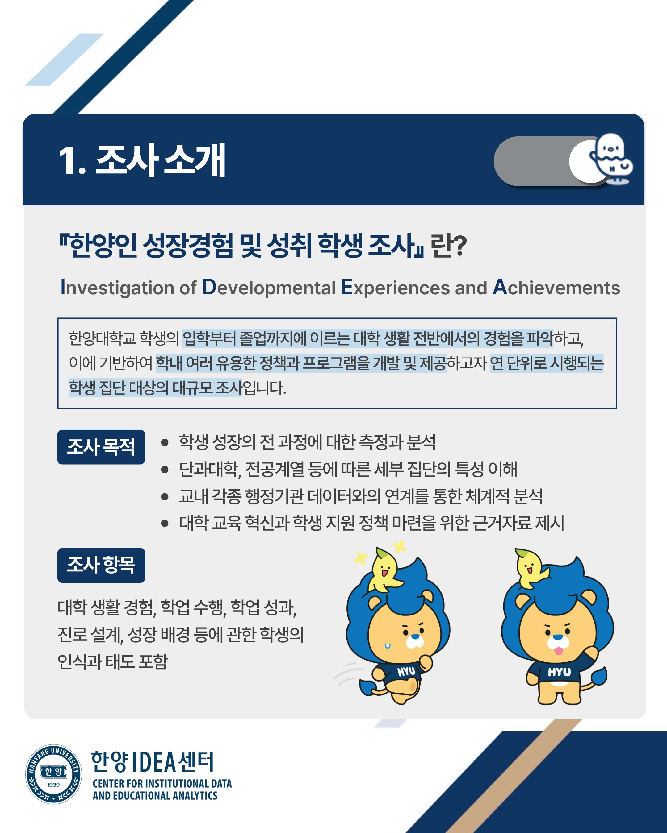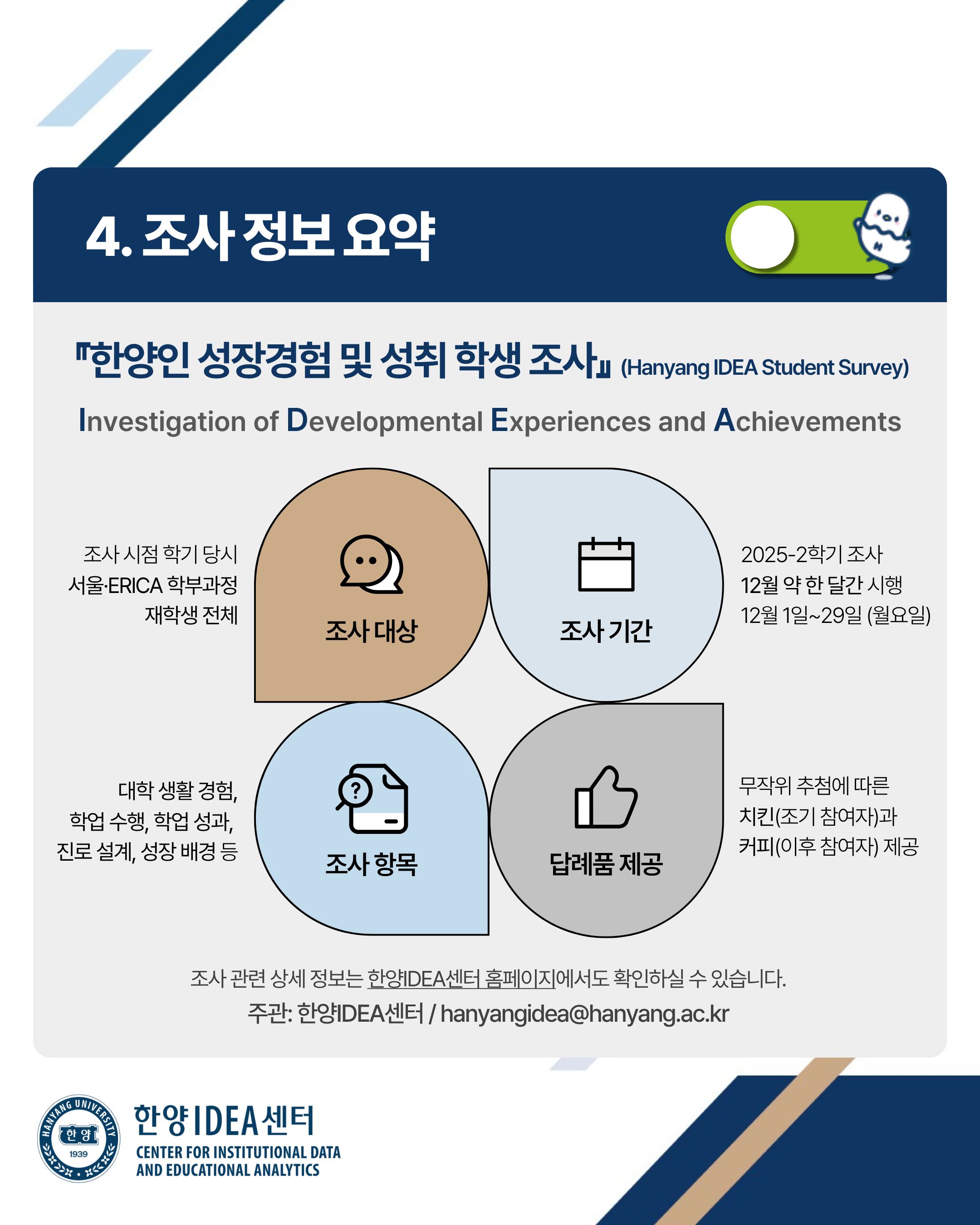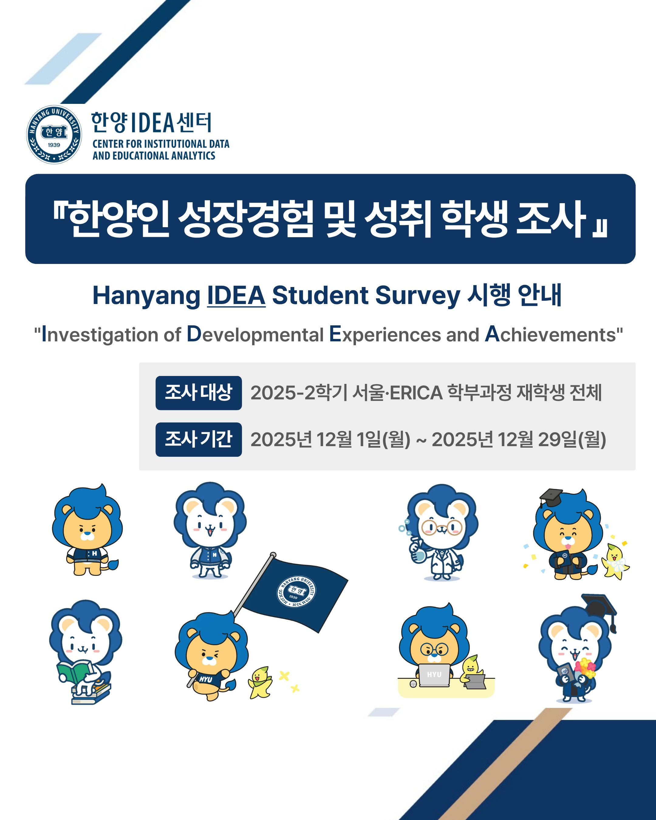 1) 명칭: 2025 한양인 성장경험 및 성취 학생 조사(Hanang IDEA Student Survey)