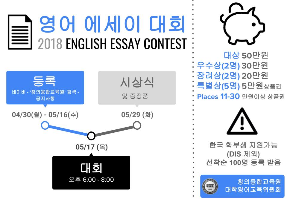 <창의융합교육원 대학영어교육위원회 한양인 영어에세이쓰기 대회>에 대해 안내드립니다.