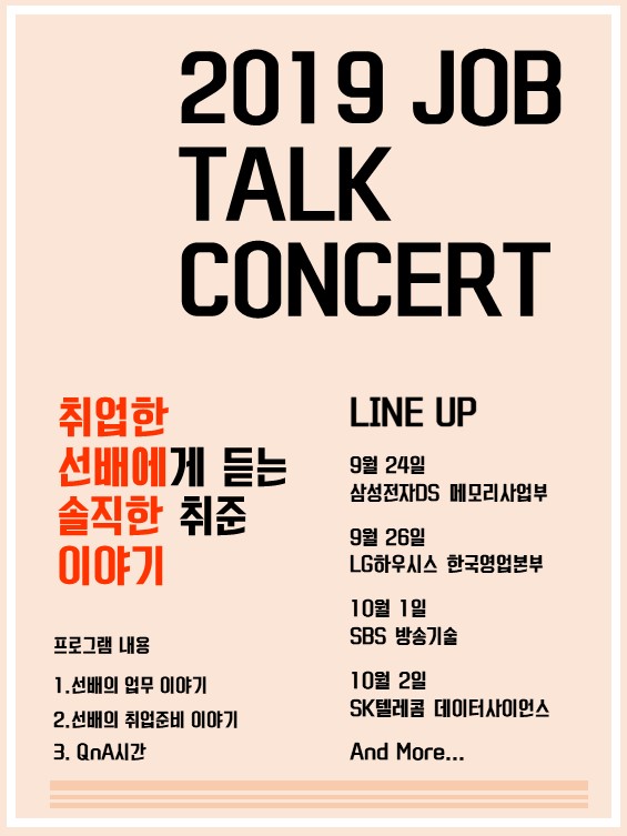 < 커리어개발센터 취업간담회 2019 JOB Talk Concert 홍보> 관련 안내 입니다.