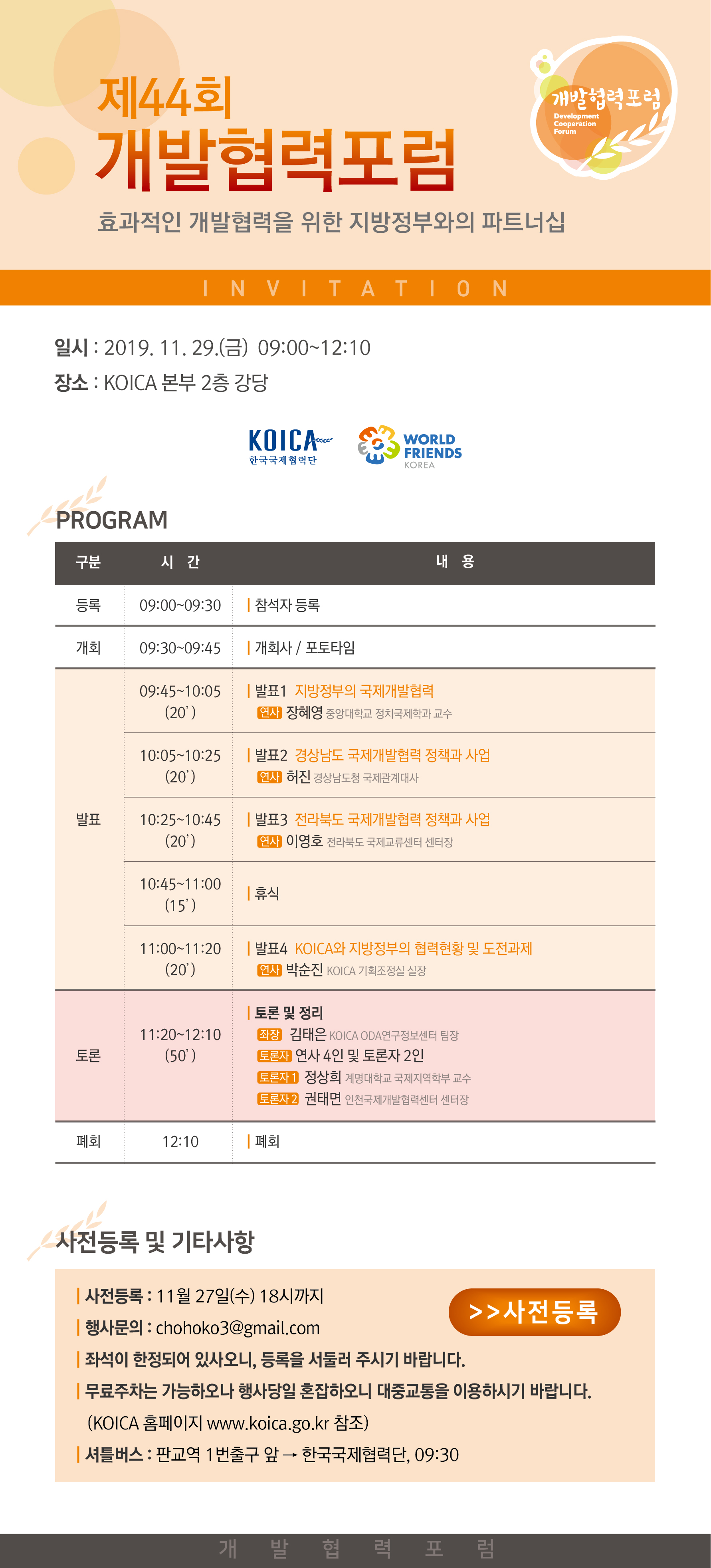 제44회 개발협력포럼 관련 안내입니다.
