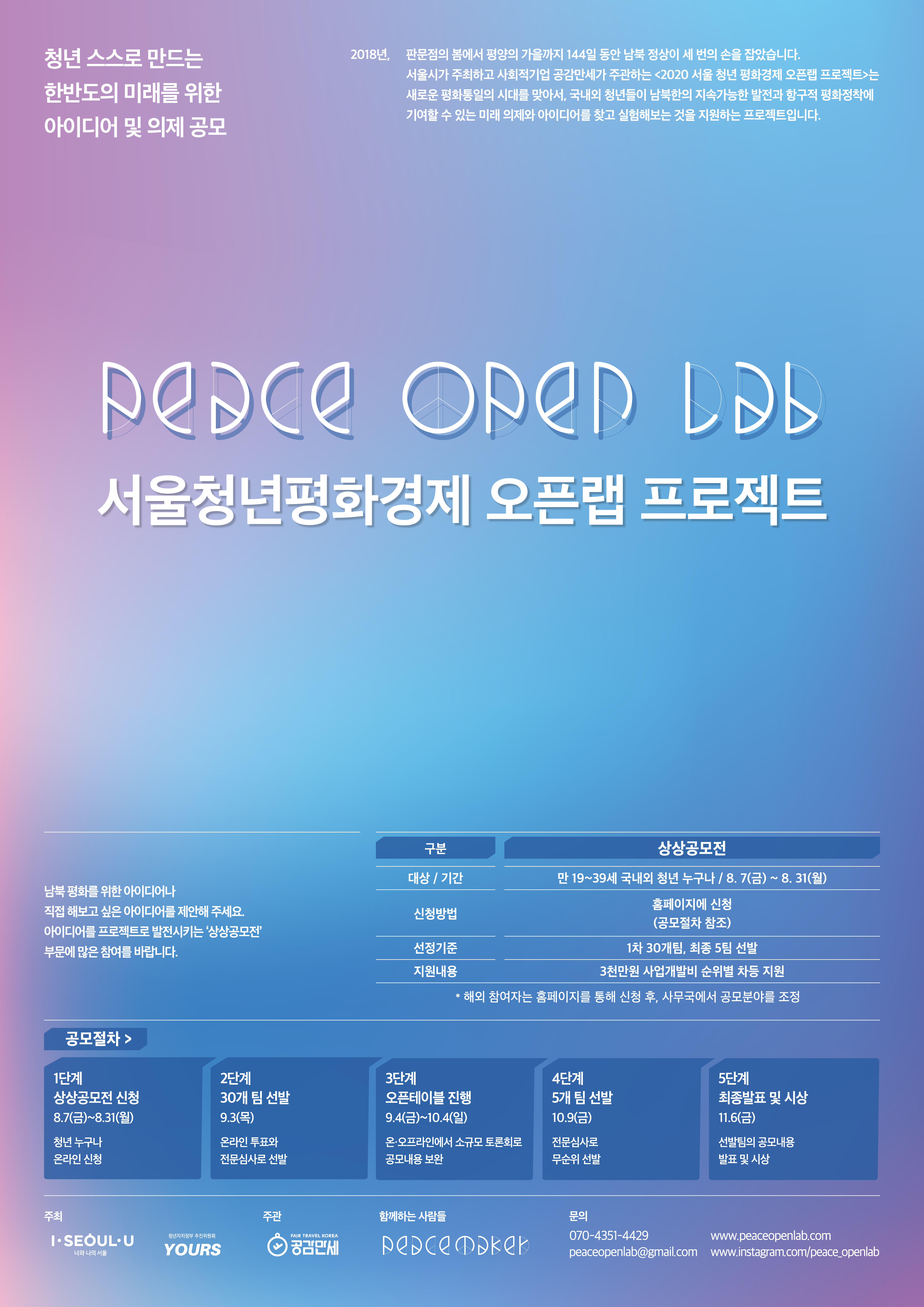 서울시에서 주최하는 <서울청년평화경제 오픈랩 프로젝트>를 안내합니다. 자세한 사항은 첨부파일을 참고하시기 바랍니다.