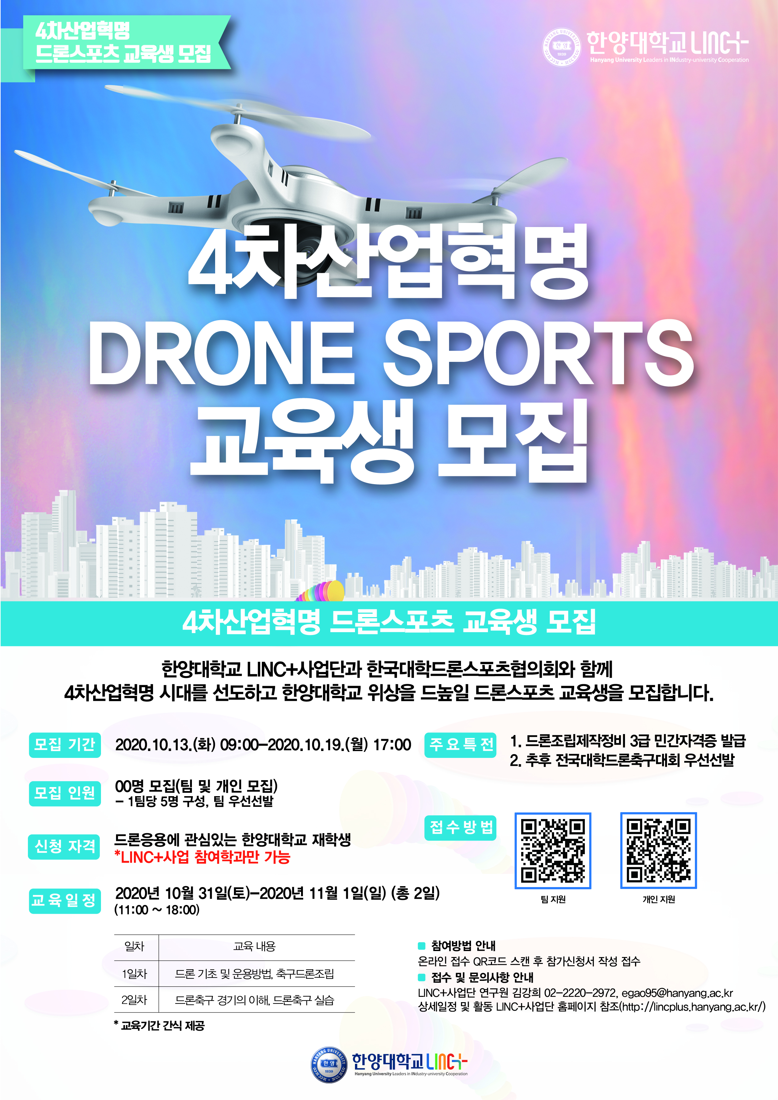 2. 신청자격 : 드론 응용에 관심 있는 한양대학교 서울캠퍼스 LINC+사업 참여학과 학부 및