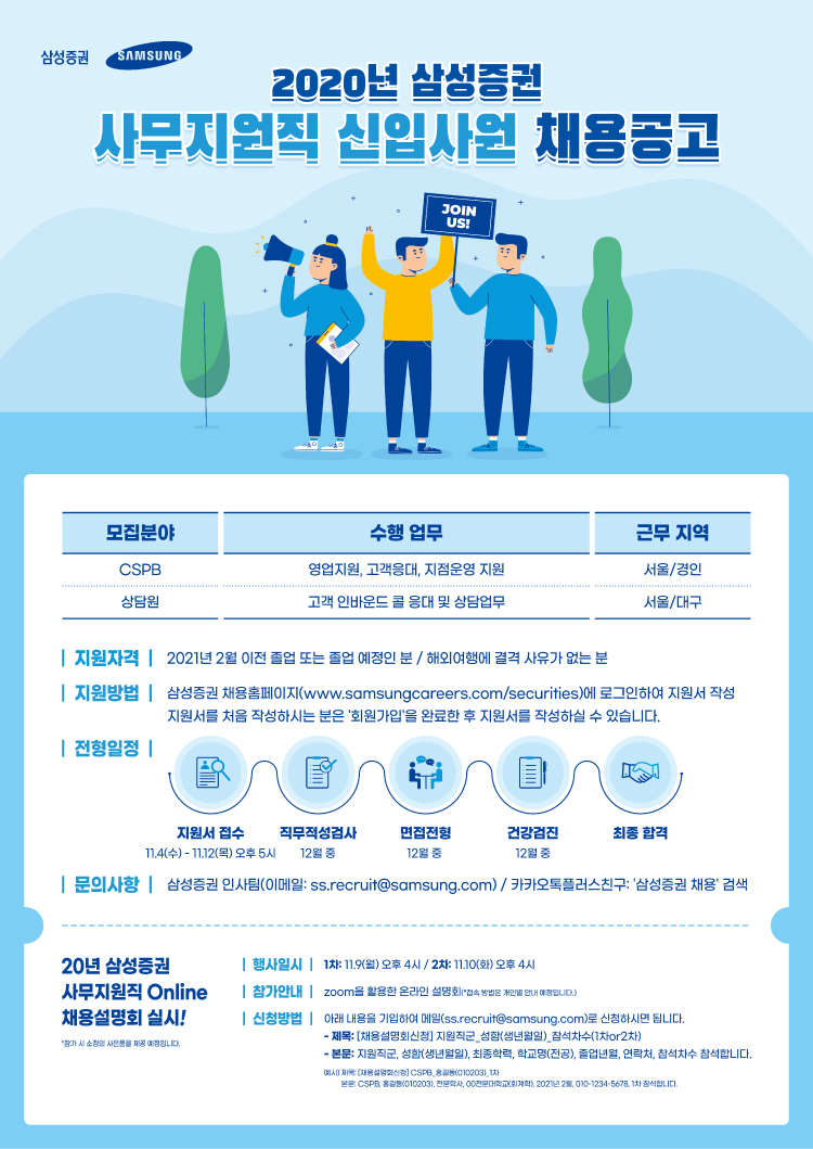 - [삼성증권] 2020년 삼성증권 사무지원직 Online 채용설명회 (채용설명회)