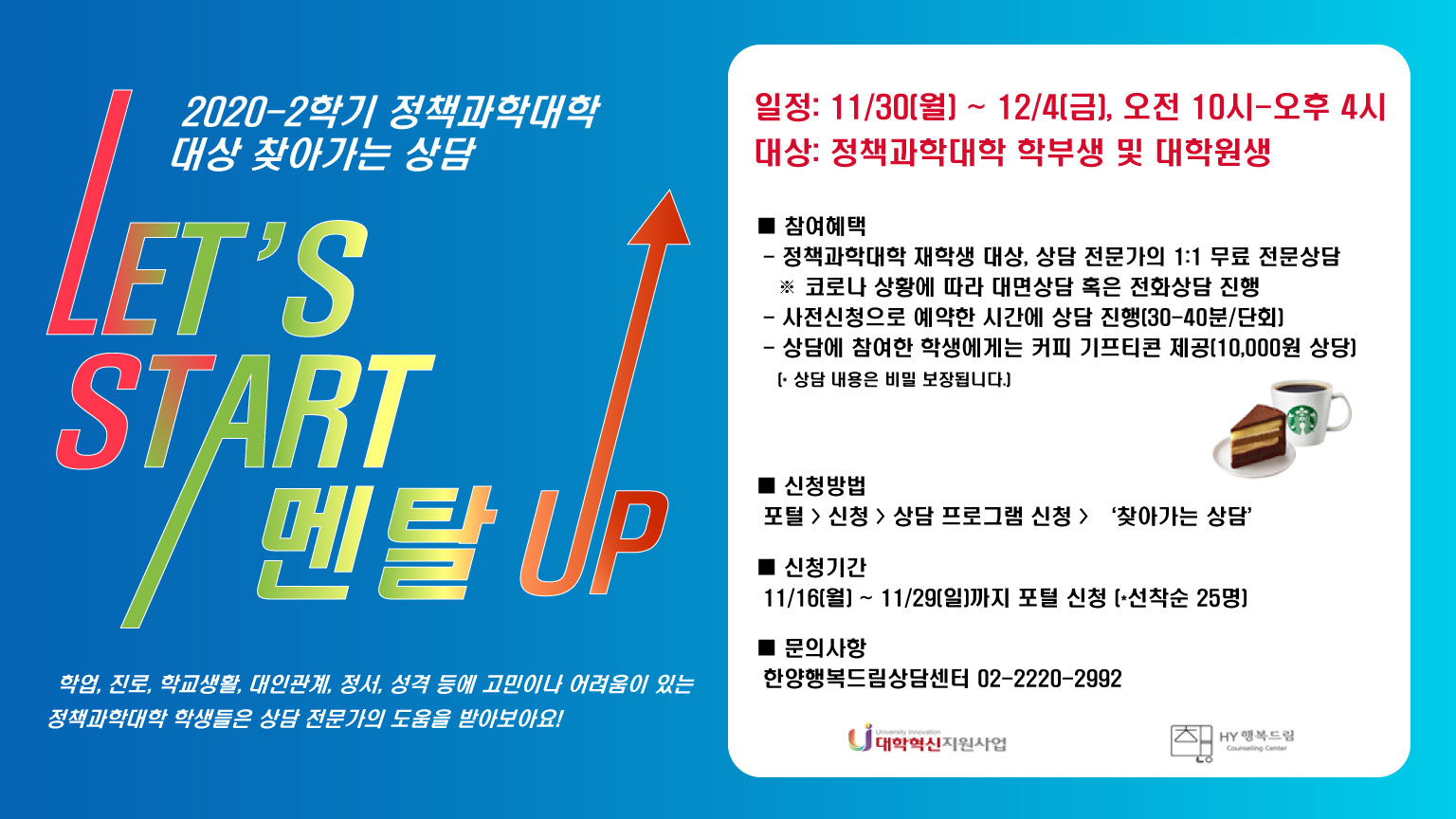 안녕하세요. 2020-2학기 정책과학대학 대상 찾아가는 상담 행사를 안내드립니다.