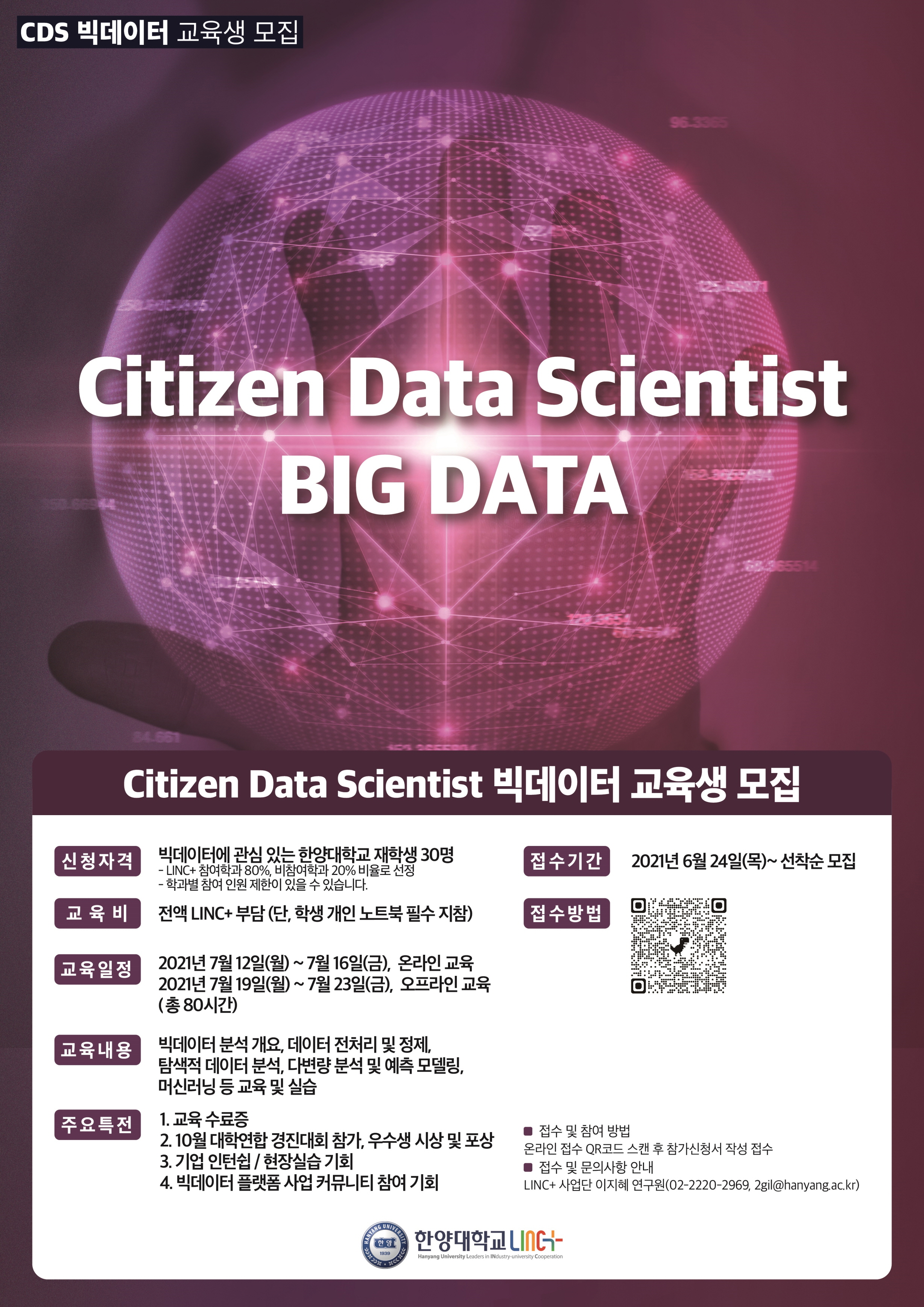 [홍보] 2021 CDS(Citizen Data Scientist) 빅데이터 교육생 모집계획 안내(LINC+사업단)