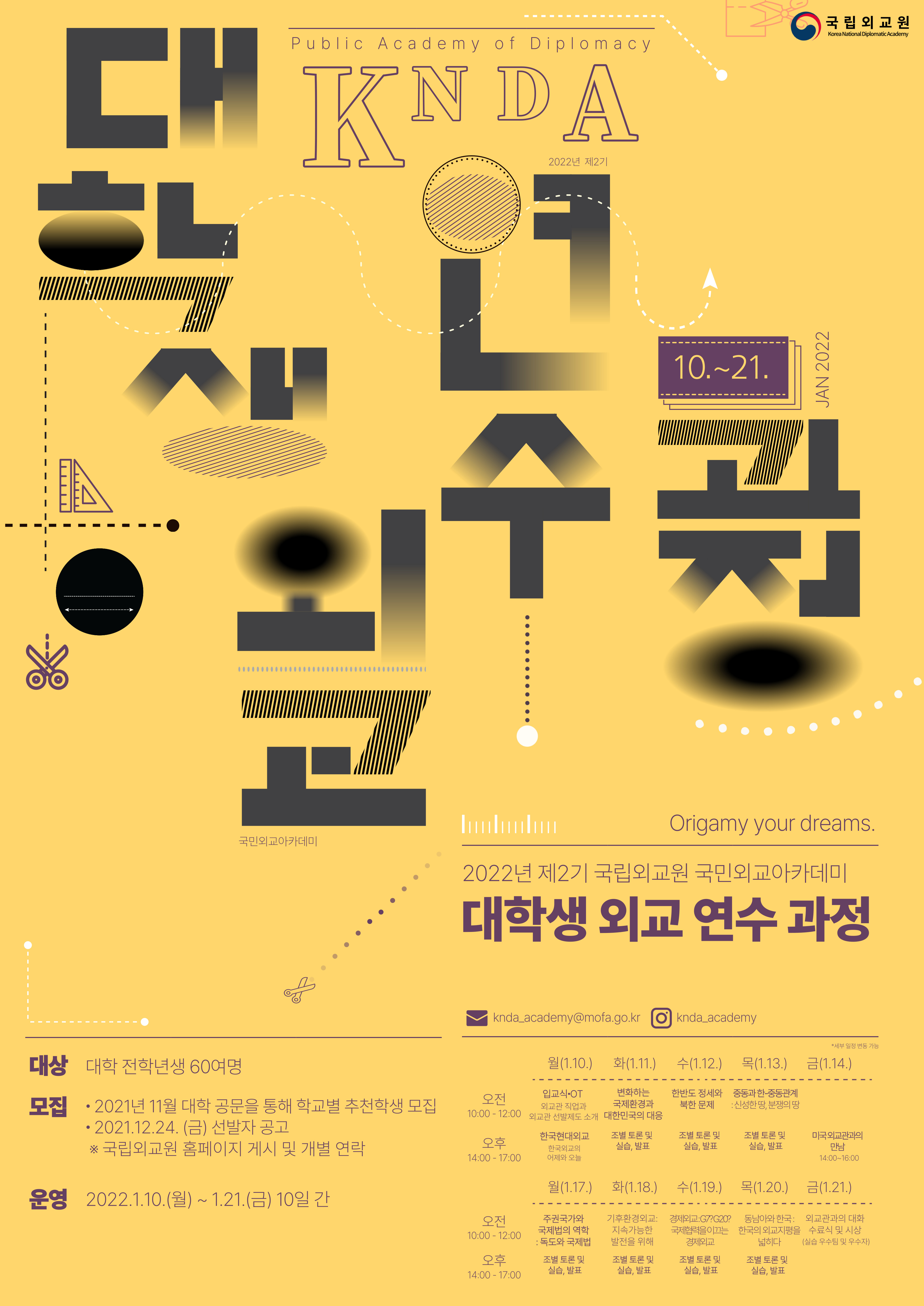 ※ 기존 우리원에서 운영해 온「대학생 동·하계 외교워크샵」을 2021년부터 국민외교아카데미 대학생 외교 연수 과정으로 통합하여 운영