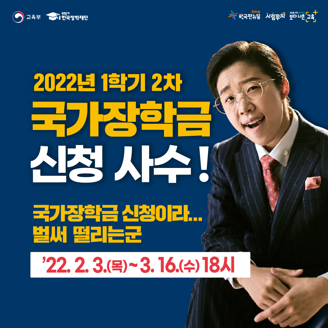 주체 | 2022-1학기 학부 신입생, 재입학생, 복학예정생 | 한국장학재단 | 한양대학교 학생지원팀 | 한양대학교 학생지원팀 | |||