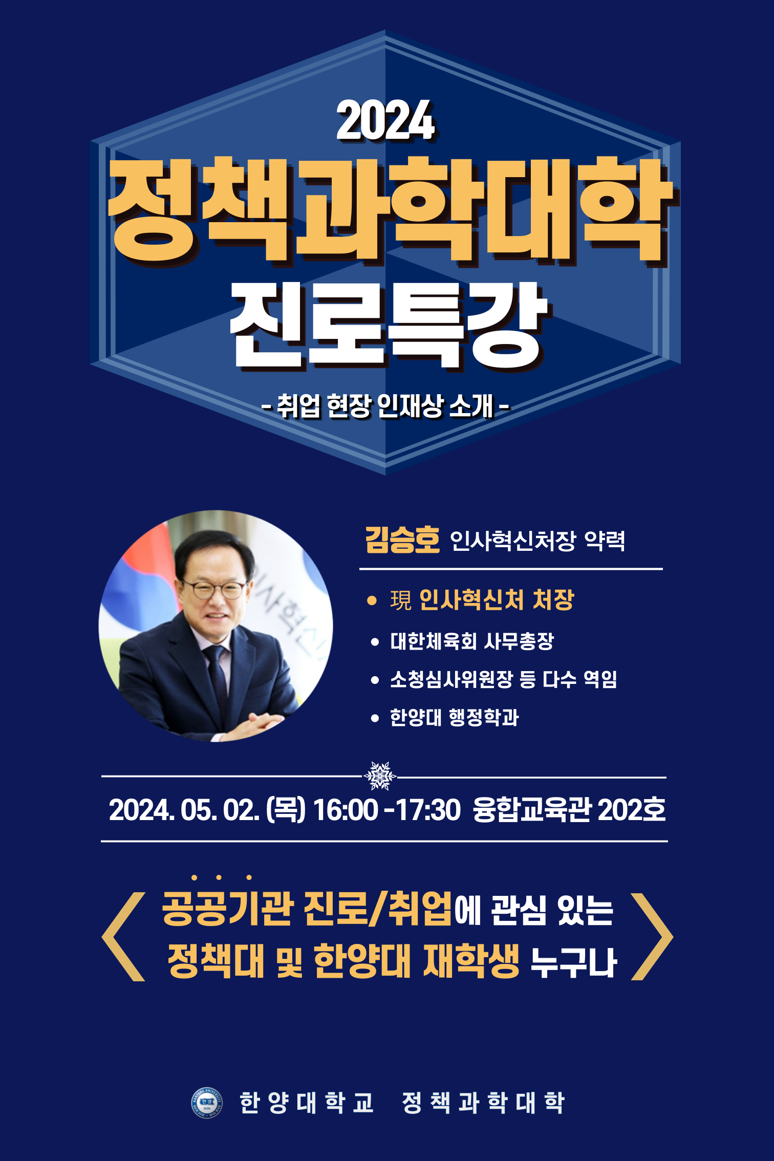 2024.05.02.(목) 16:00~ 융합교육관 202호에서 김승호 인사혁신처장님을 모시고